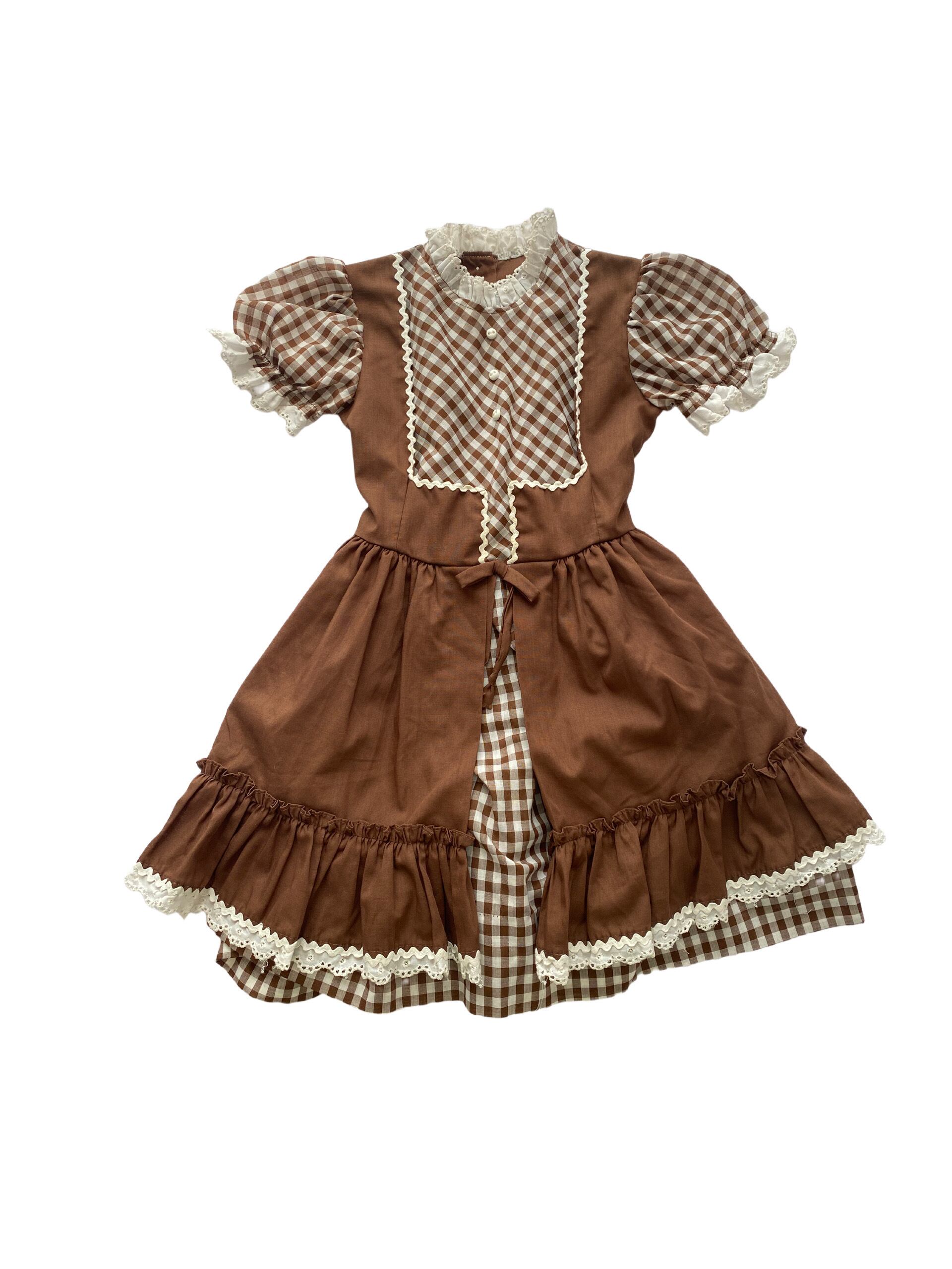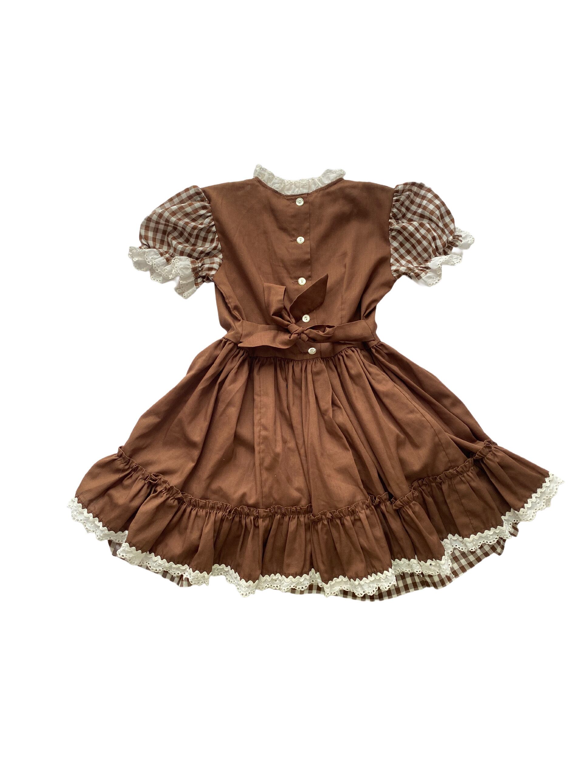 【Size110】vintage ブラウンチェックワンピース ヴィンテージ US古着 ドレス