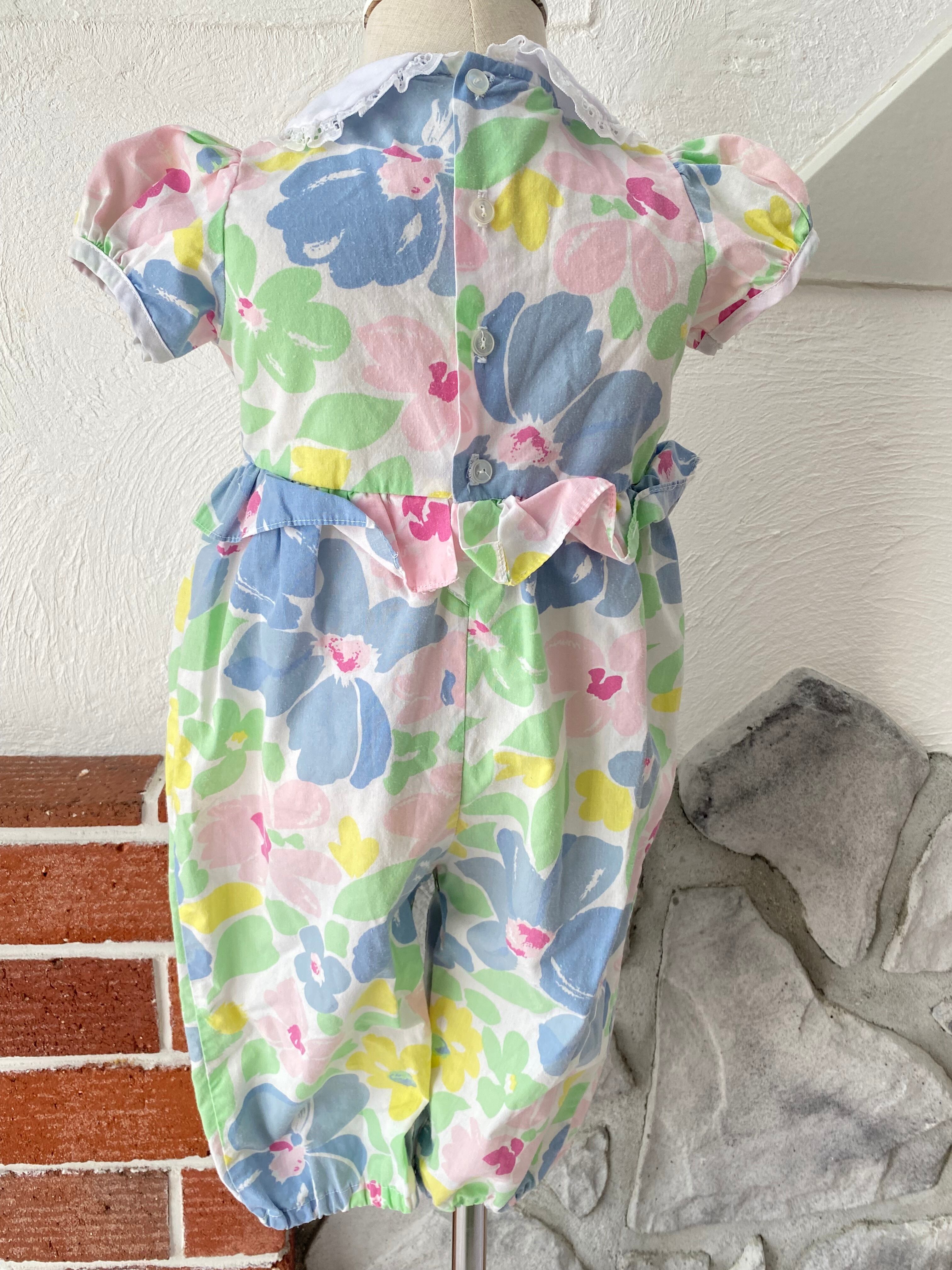 【Size 80-90】vintage 花柄 半袖ロンパース US古着 ヴィンテージ