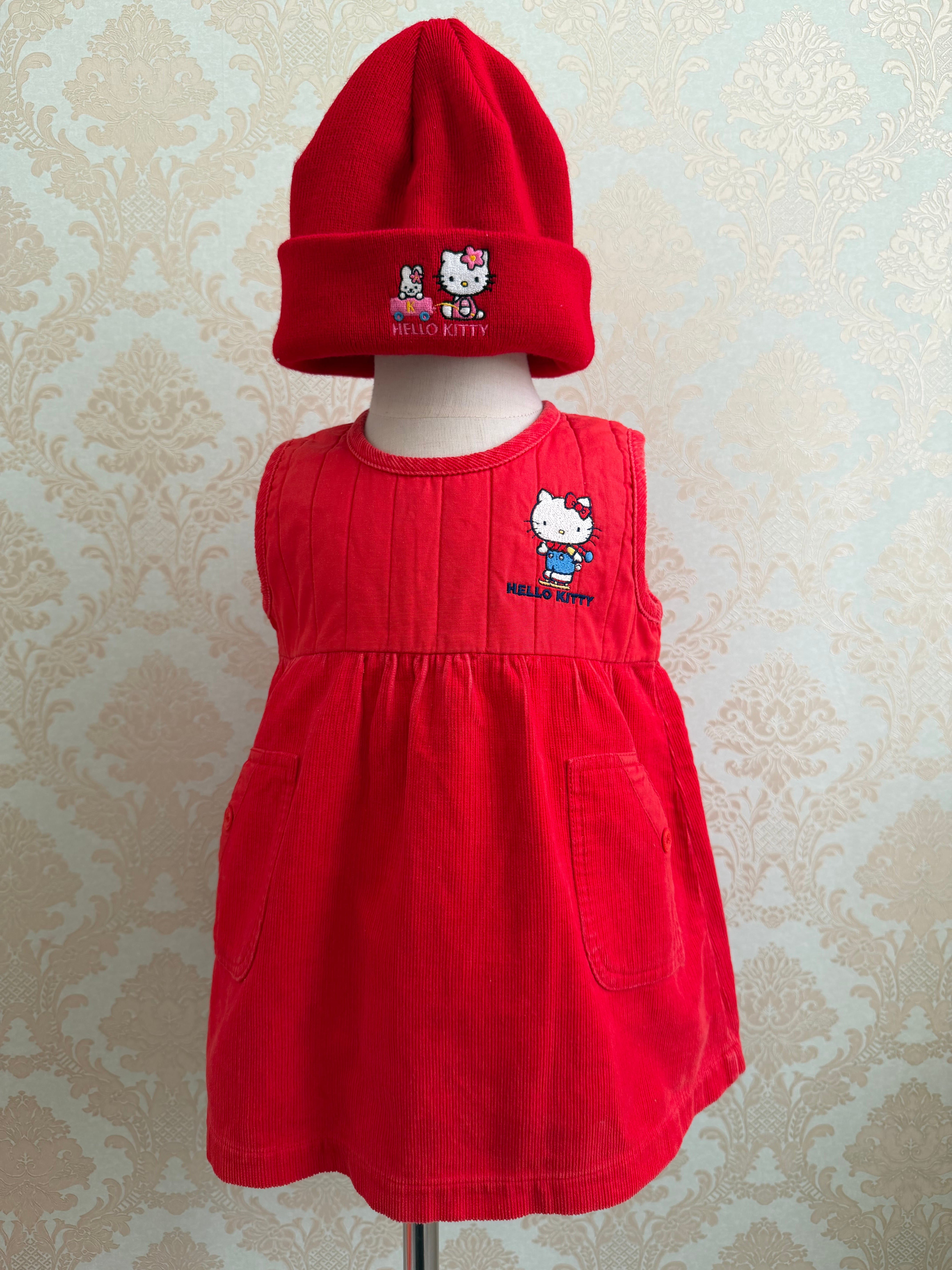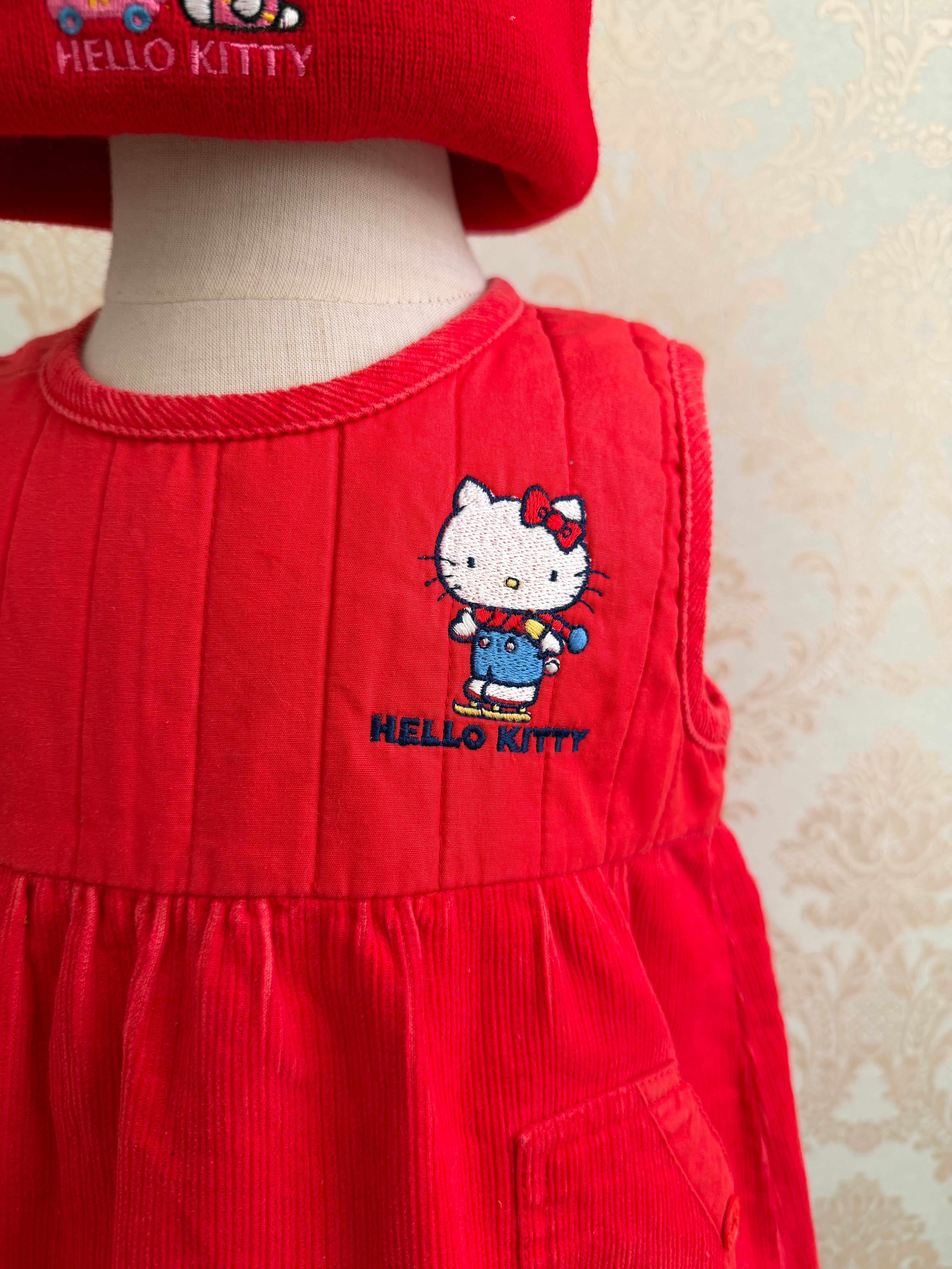 【Size 90】70s キティちゃん ジャンパースカート ビーニー セット サンリオ レトロ