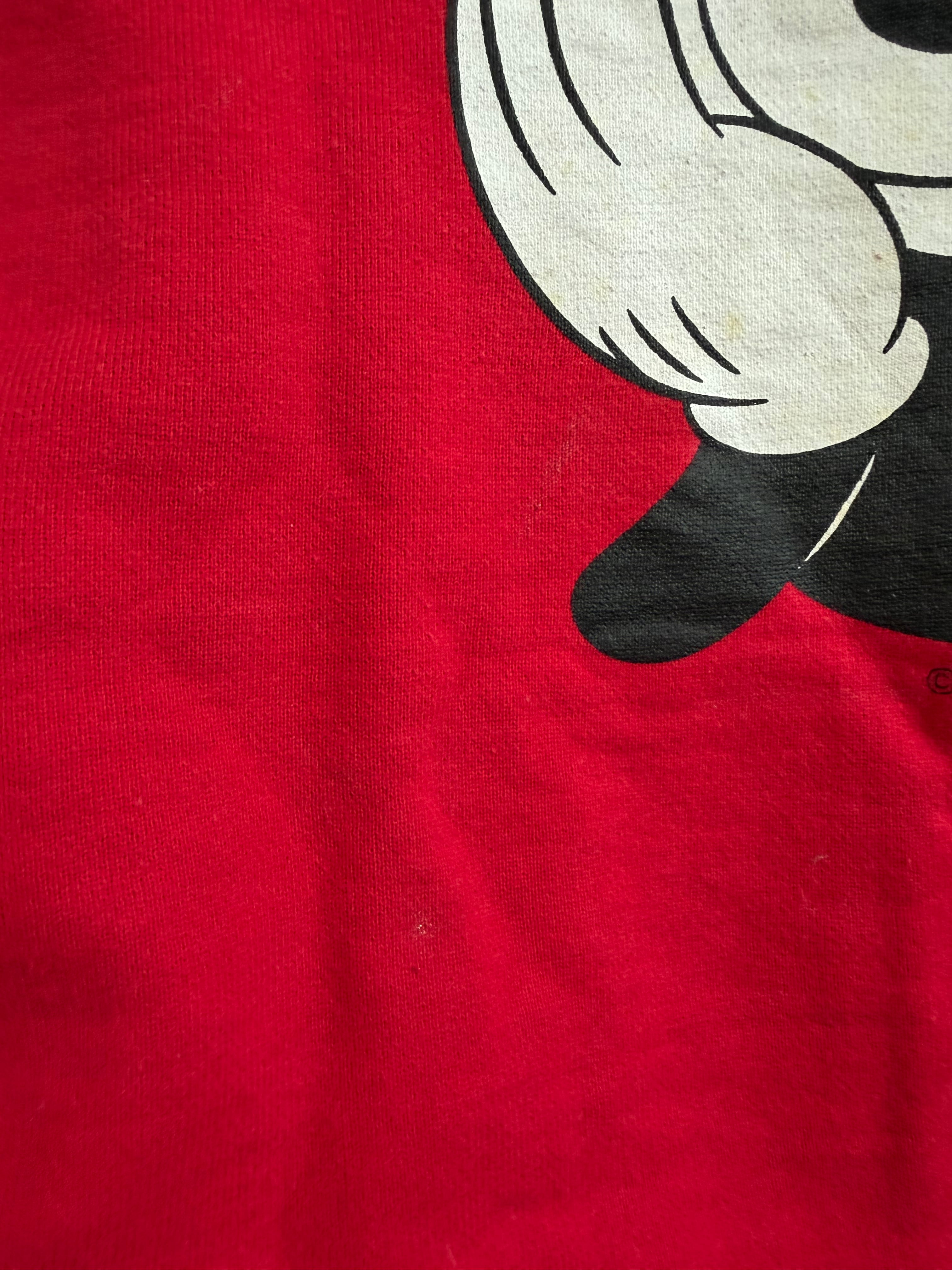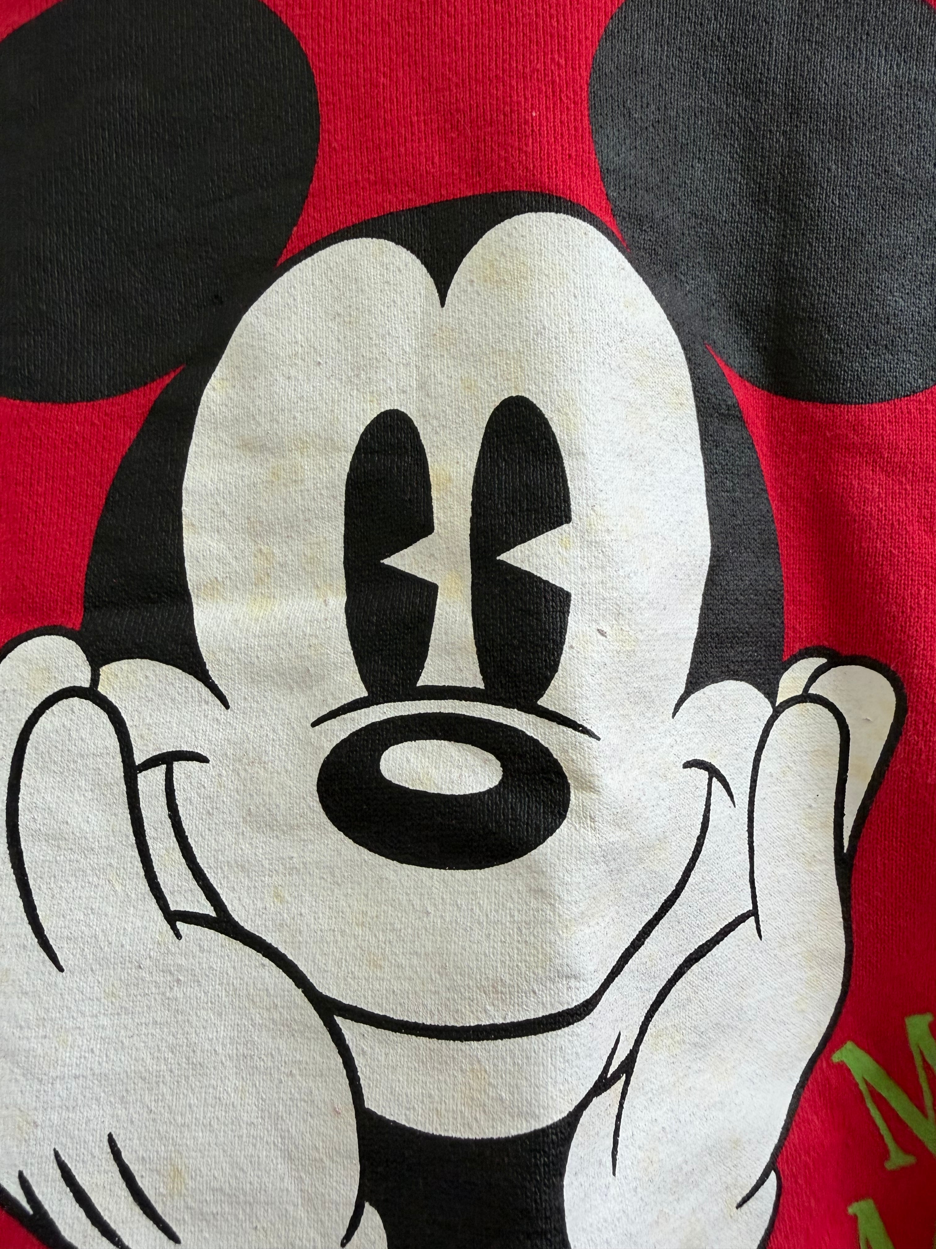 タグに記名、汚れ(ミッキーの顔にシミ、白い汚れ所々)、使用感あり。写真をご確認ください。