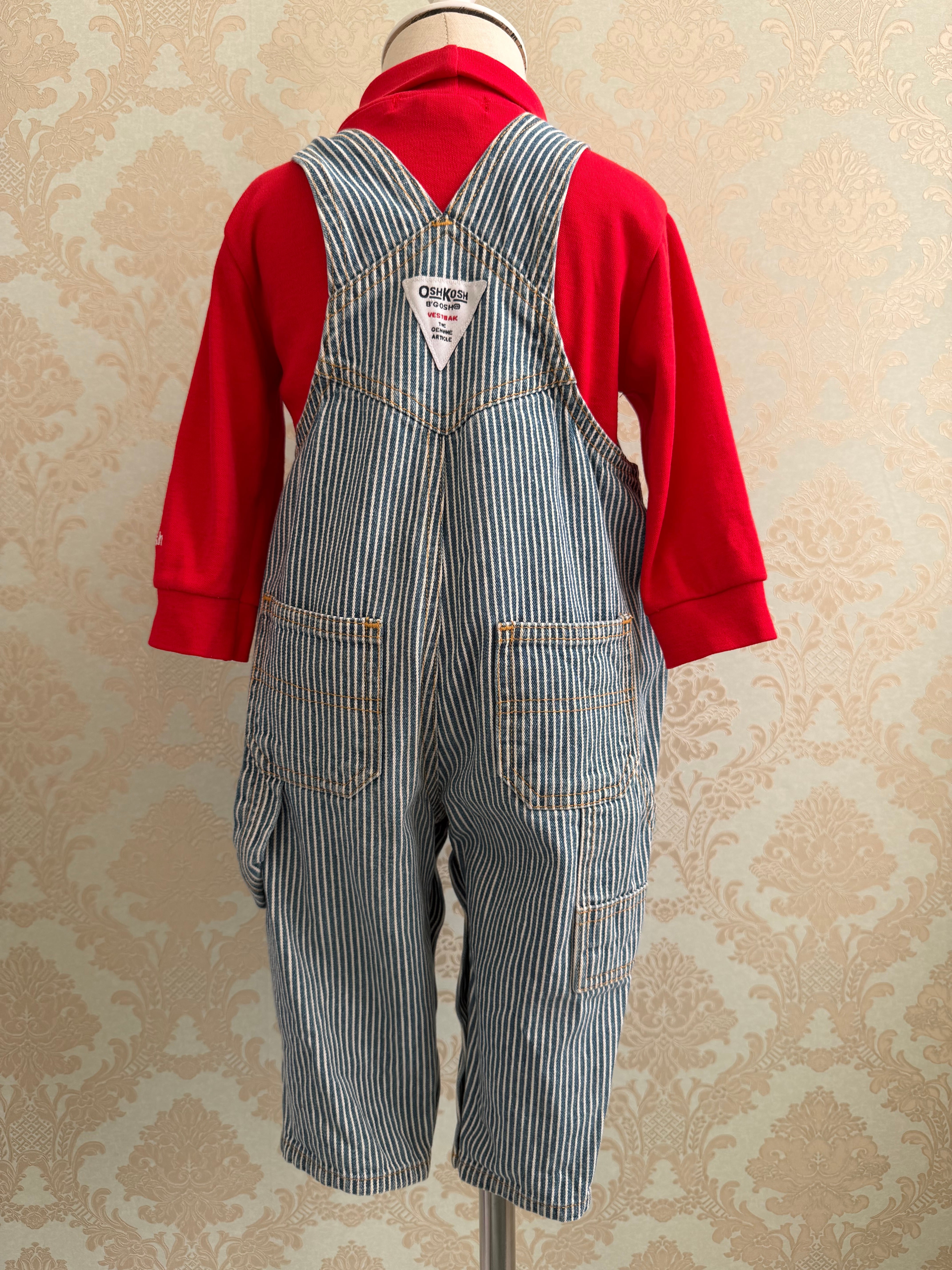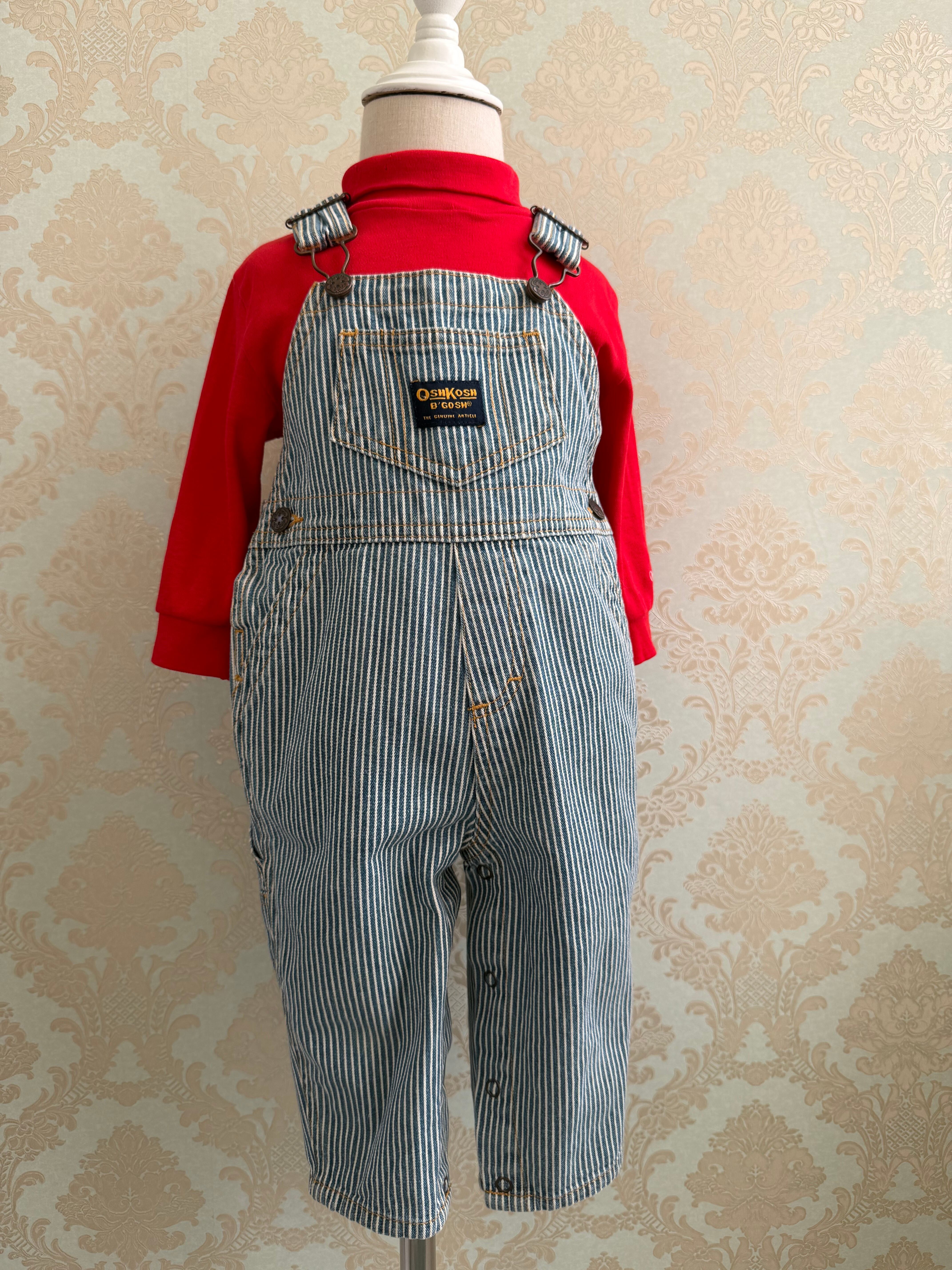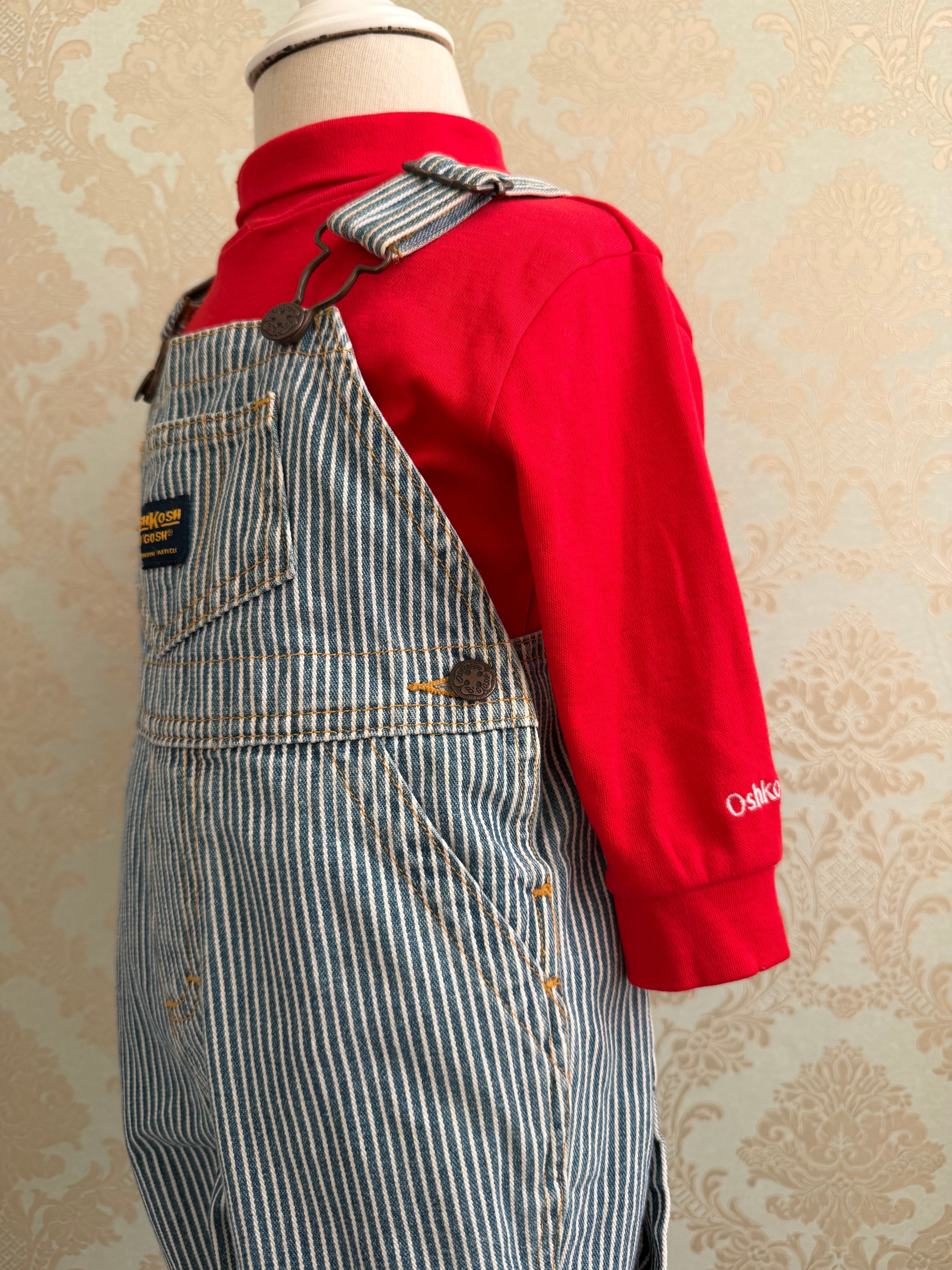 【Size 80】Oshkosh ヒッコリー オーバーオール タートルネック セット