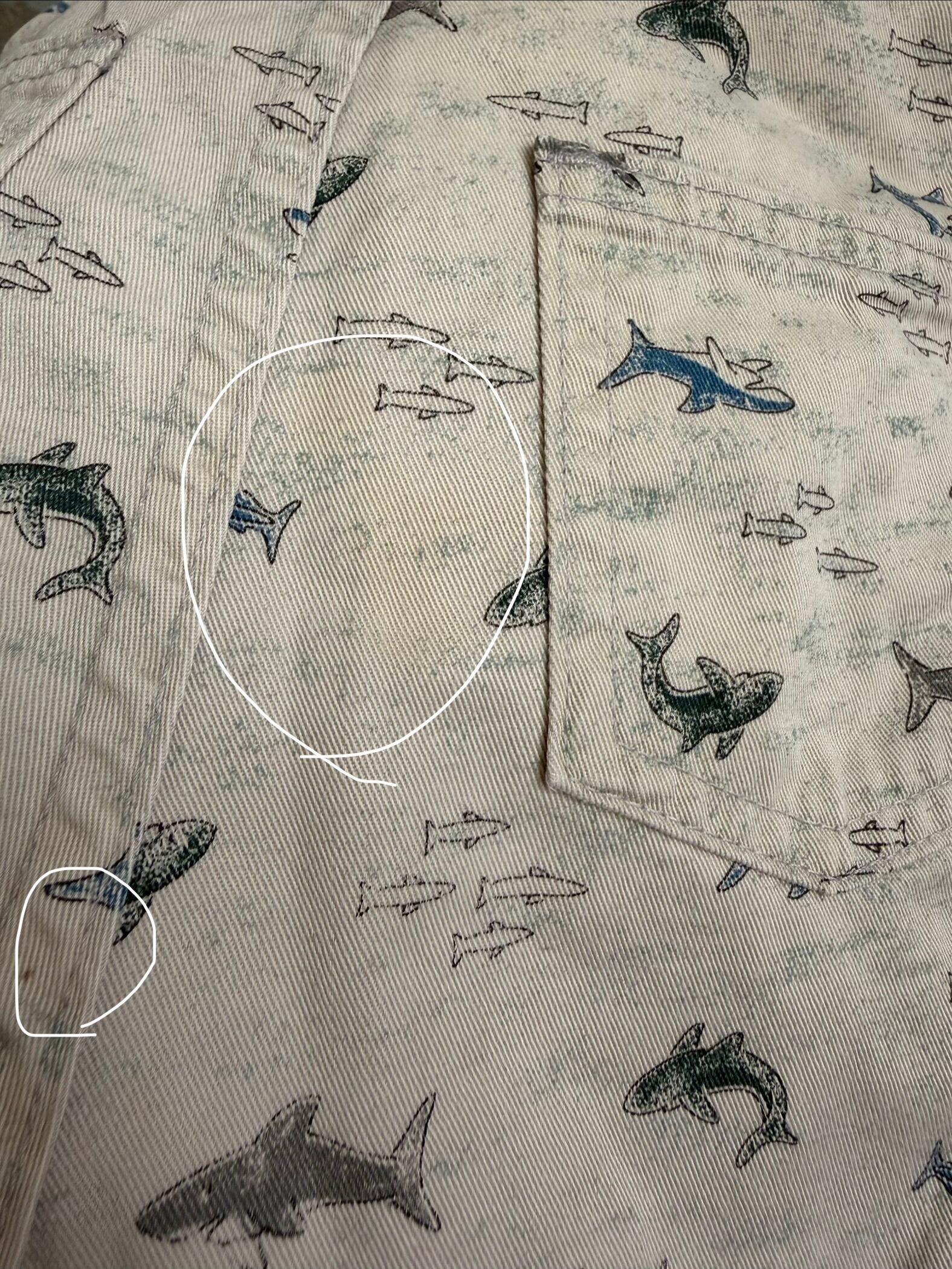 ポケット付近、お尻にシミあり。写真をご確認ください。
